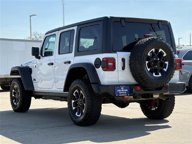 **ONE OWNER**, **CLEAN CARFAX!**, **BLUE TOOTH**, **BACK UP CAMERA**, **ALLOY WHEELS**. 2025 Jeep Wrangler Rubicon Bright White Clearcoat 4WD 8-Speed Automatic CARFAX One-Owner. 20/22 City/Highway MPG 2.0L I4 DOHCJOE MYERS TOYOTA NAMED A CARFAX TOP-RATED DEALER SEVEN YEARS IN A ROW!!! COME EXPERIENCE JOE MYERS TOYOTA**SAVE Time and $Money, FRESH QUALITY INVENTORY EVERYDAY, DAILY SPECIALS!! @JOE MYERS TOYOTA WE ARE HERE FOR YOU!!! Se Habla Espan¦âol, Financing Available, VOLUME DEALER, BEST DEALS**Call Now! Recent Arrival! Odometer is 3396 miles below market average! All pricing is subject to change and may not include dealer added options.. Joe Myers Toyota is proudly serving Houston, Spring, Katy, Cypress, 290 HWY, FM1960, area and follow communities, Northwest Freeway, Cy Fair, Jersey Village, Tomball, The Woodlands, North Freeway, Klein, I-10, Katy, Missouri City, Sugarland, Waller, Brenham, Hempstead, Richmond, and College Station.