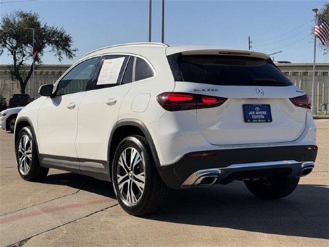 **ONE OWNER**, **CLEAN CARFAX!**, **APPLE CAR PLAY**, ANDROID AUTO, **BLUE TOOTH**, **BACK UP CAMERA**, **LEATHER INTERIOR**, **ALLOY WHEELS**. 2025 Mercedes-Benz GLA GLA 250 4MATIC- White 4MATIC- 8 Speed Dual Clutch 25/33 City/Highway MPG 2.0L I4 TurbochargedJOE MYERS TOYOTA NAMED A CARFAX TOP-RATED DEALER SEVEN YEARS IN A ROW!!! COME EXPERIENCE JOE MYERS TOYOTA**SAVE Time and $Money, FRESH QUALITY INVENTORY EVERYDAY, DAILY SPECIALS!! @JOE MYERS TOYOTA WE ARE HERE FOR YOU!!! Se Habla Espan¦âol, Financing Available, VOLUME DEALER, BEST DEALS**Call Now! Recent Arrival! 25/33 City/Highway MPG All pricing is subject to change and may not include dealer added options.. Joe Myers Toyota is proudly serving Houston, Spring, Katy, Cypress, 290 HWY, FM1960, area and follow communities, Northwest Freeway, Cy Fair, Jersey Village, Tomball, The Woodlands, North Freeway, Klein, I-10, Katy, Missouri City, Sugarland, Waller, Brenham, Hempstead, Richmond, and College Station.