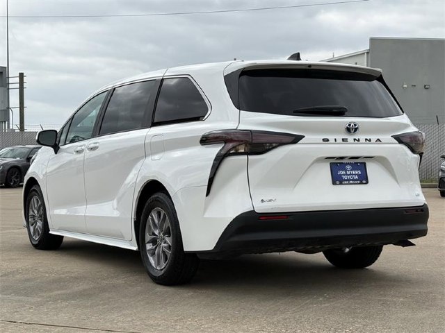 **ONE OWNER**, **CLEAN CARFAX!**, **BLUE TOOTH**, **BACK UP CAMERA**, **ALLOY WHEELS**, 2.5L I4 Hybrid w/VVT-iE DOHC 16V. 2025 Toyota Sienna LE 8 Passenger White FWD CVT CARFAX One-Owner. 36/36 City/Highway MPG 2.5L I4 Hybrid w/VVT-iE DOHC 16VJOE MYERS TOYOTA NAMED A CARFAX TOP-RATED DEALER SEVEN YEARS IN A ROW!!! COME EXPERIENCE JOE MYERS TOYOTA**SAVE Time and $Money, FRESH QUALITY INVENTORY EVERYDAY, DAILY SPECIALS!! @JOE MYERS TOYOTA WE ARE HERE FOR YOU!!! Se Habla Espan¦âol, Financing Available, VOLUME DEALER, BEST DEALS**Call Now! Recent Arrival! 36/36 City/Highway MPG All pricing is subject to change and may not include dealer added options.. Joe Myers Toyota is proudly serving Houston, Spring, Katy, Cypress, 290 HWY, FM1960, area and follow communities, Northwest Freeway, Cy Fair, Jersey Village, Tomball, The Woodlands, North Freeway, Klein, I-10, Katy, Missouri City, Sugarland, Waller, Brenham, Hempstead, Richmond, and College Station.