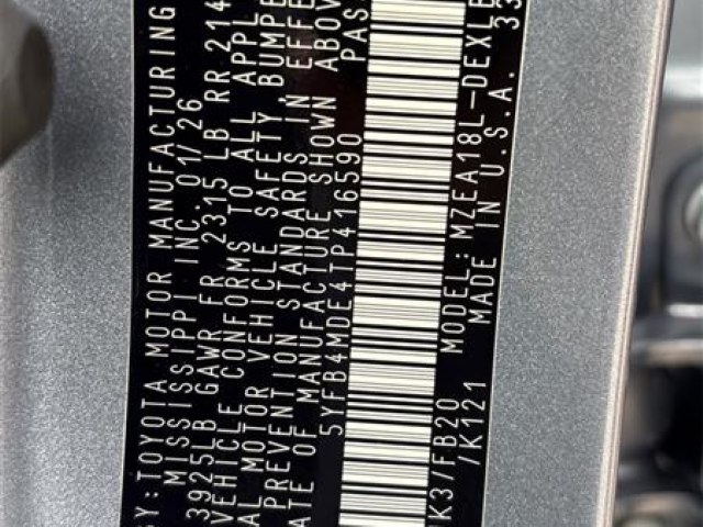 | VIN: | 5YFB4MDE4TP416590 |