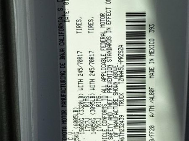 JBL Premium Audio|Fabric Seat Trim|Spray-on Bed Liner|Wheels: 17"" Styled Alloy|3.583 Axle Ratio|Radio: 8"" Toyota Audio Multimedia|4-Wheel Disc Brakes|Emergency communication system: Safety Connect (up to 10-year trial subscription)|Apple CarPlay/Android Auto|Auto High-beam Headlights|Exterior Parking Camera Rear|AM/FM radio: SiriusXM|Auto-dimming Rear-View mirror|Front beverage holders|Variably intermittent wipers|Trip computer|Traction control|Tilt steering wheel|Telescoping steering wheel|Steering wheel mounted audio controls|Split folding rear seat|Speed-sensing steering|Speed control|Remote keyless entry|Rear window defroster|Rear step bumper|Power windows|Power steering|Power door mirrors|Passenger door bin|Panic alarm|Overhead console|Overhead airbag|Outside temperature display|Occupant sensing airbag|Low tire pressure warning|Knee airbag|Illuminated entry|Heated door mirrors|Fully automatic headlights|Front reading lights|Front fog lights|Front anti-roll bar|Four wheel independent suspension|Dual front side impact airbags|Dual front impact airbags|Driver door bin|Bumpers: body-color|Brake assist|Anti-whiplash front head restraints|Alloy wheels|ABS brakes|Tachometer|Front Center Armrest|Front Bucket Seats|Electronic Stability Control|Air Conditioning|6 Speakers