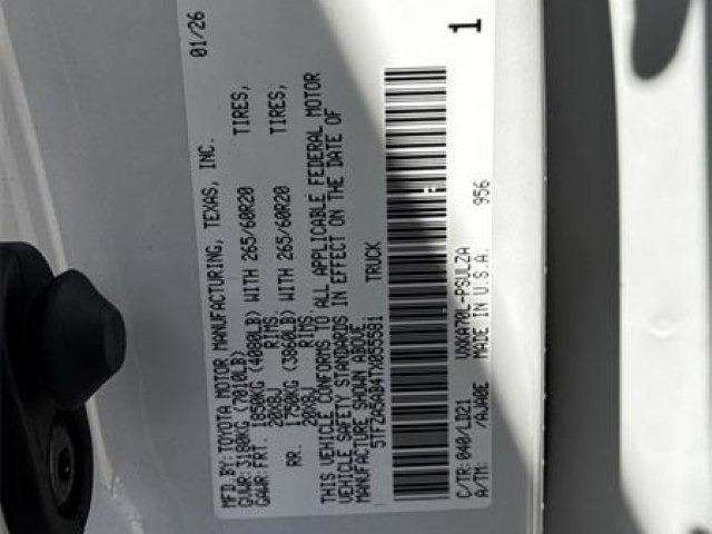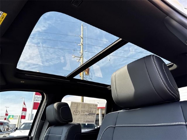400W/120V AC Deck and Cabin Power Supply|Bed Step|Nightshade Package|Blind Spot Monitor|Carpet Floor Mats|Qi-Compatible Wireless Charger|12 JBL Speakers|High Grade Full LED Headlamp|Leather Seat Trim|Limited Premium Package|Panoramic View Monitor Package|Power Package|Heated Color-Keyed Outside Mirrors|Power Folding Color-Keyed Outside Mirrors|Wheels: 20"" x 8J Matte Black TRD Sport Style|Panoramic View Back Monitor|Black Dual-Step Running Board|Panoramic Sunroof and Moonroof|3.31 Axle Ratio|AM/FM Radio|Heated and Ventilated Front Bucket Seats|20"" x 8J Alloy Wheels|Towing Package|Heated Leather Steering Wheel|4-Wheel Disc Brakes|Emergency communication system: Safety Connect (up to 10-year trial subscription)|Navigation system: Drive Connect Cloud Navigation (1-year trial subscription)|Apple CarPlay/Android Auto|Auto High-beam Headlights|Exterior Parking Camera Rear|AM/FM radio: SiriusXM|Auto-dimming Rear-View mirror|Front beverage holders|Ventilated front seats|Variably intermittent wipers|Turn signal indicator mirrors|Trip computer|Traction control|Tilt steering wheel|Telescoping steering wheel|Steering wheel mounted audio controls|Split folding rear seat|Speed-sensing steering|Speed control|Security system|Remote keyless entry|Rear window defroster|Rear step bumper|Rear seat center armrest|Rear reading lights|Radio data system|Power windows|Power steering|Power passenger seat|Power driver seat|Power door mirrors|Passenger vanity mirror|Passenger door bin|Panic alarm|Overhead console|Overhead airbag|Outside temperature display|Occupant sensing airbag|Memory seat|Low tire pressure warning|Leather steering wheel|Knee airbag|Illuminated entry|Heated front seats|Heated door mirrors|Garage door transmitter: HomeLink|Fully automatic headlights|Front wheel independent suspension|Front reading lights|Front fog lights|Front dual zone A/C|Front anti-roll bar|Dual front side impact airbags|Dual front impact airbags|Driver vanity mirror|Driver door bin|Delay-off headlights|Bumpers: body-color|Brake assist|Automatic temperature control|Auto-dimming door mirrors|Alloy wheels|ABS brakes|Voltmeter|Tachometer|Leather Shift Knob|Front Center Armrest|Front Bucket Seats|Electronic Stability Control|Air Conditioning|9 Speakers