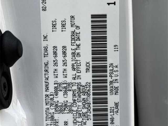 400W/120V AC Deck and Cabin Power Supply|Bed Step|Nightshade Package|Blind Spot Monitor|Carpet Floor Mats|Qi-Compatible Wireless Charger|12 JBL Speakers|High Grade Full LED Headlamp|Leather Seat Trim|Limited Premium Package|Panoramic View Monitor Package|Power Package|Heated Color-Keyed Outside Mirrors|Power Folding Color-Keyed Outside Mirrors|Wheels: 20"" x 8J Matte Black TRD Sport Style|Panoramic View Back Monitor|Black Dual-Step Running Board|Panoramic Sunroof and Moonroof|3.31 Axle Ratio|AM/FM Radio|Heated and Ventilated Front Bucket Seats|20"" x 8J Alloy Wheels|Towing Package|Heated Leather Steering Wheel|4-Wheel Disc Brakes|Emergency communication system: Safety Connect (up to 10-year trial subscription)|Navigation system: Drive Connect Cloud Navigation (1-year trial subscription)|Apple CarPlay/Android Auto|Auto High-beam Headlights|Exterior Parking Camera Rear|AM/FM radio: SiriusXM|Auto-dimming Rear-View mirror|Front beverage holders|Ventilated front seats|Variably intermittent wipers|Turn signal indicator mirrors|Trip computer|Traction control|Tilt steering wheel|Telescoping steering wheel|Steering wheel mounted audio controls|Split folding rear seat|Speed-sensing steering|Speed control|Security system|Remote keyless entry|Rear window defroster|Rear step bumper|Rear seat center armrest|Rear reading lights|Radio data system|Power windows|Power steering|Power passenger seat|Power driver seat|Power door mirrors|Passenger vanity mirror|Passenger door bin|Panic alarm|Overhead console|Overhead airbag|Outside temperature display|Occupant sensing airbag|Memory seat|Low tire pressure warning|Leather steering wheel|Knee airbag|Illuminated entry|Heated front seats|Heated door mirrors|Garage door transmitter: HomeLink|Fully automatic headlights|Front wheel independent suspension|Front reading lights|Front fog lights|Front dual zone A/C|Front anti-roll bar|Dual front side impact airbags|Dual front impact airbags|Driver vanity mirror|Driver door bin|Delay-off headlights|Bumpers: body-color|Brake assist|Automatic temperature control|Auto-dimming door mirrors|Alloy wheels|ABS brakes|Voltmeter|Tachometer|Leather Shift Knob|Front Center Armrest|Front Bucket Seats|Electronic Stability Control|Air Conditioning|9 Speakers