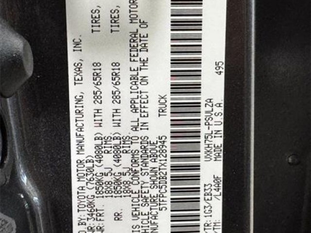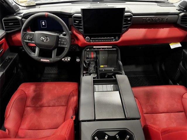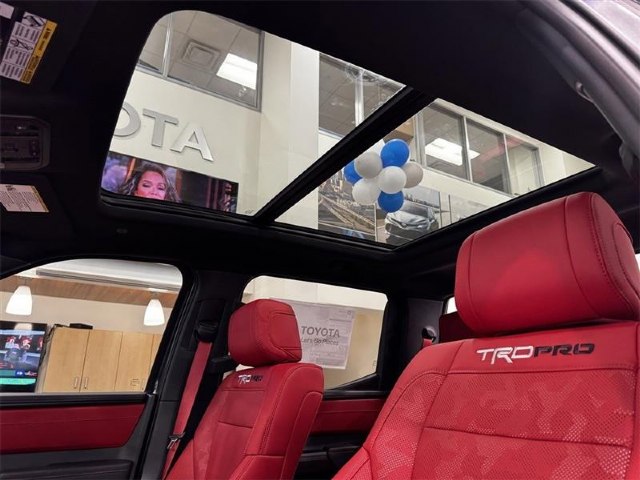 Bed Step|SofTex Seat Trim|TRD Cast Aluminum Running Board|3.31 Axle Ratio|Radio: Premium Audio with JBL|Heated and Ventilated Front Bucket Seats|Wheels: 18"" Black Forged Aluminum BBS|TRD Pro Package|Wheel Locks|12 Speakers|Emergency communication system: Safety Connect (up to 10-year trial subscription)|Navigation system: Drive Connect Cloud Navigation (1-year trial subscription)|Apple CarPlay/Android Auto|Auto High-beam Headlights|Exterior Parking Camera Rear|AM/FM radio: SiriusXM|Auto-dimming Rear-View mirror|Front beverage holders|Ventilated front seats|Variably intermittent wipers|Turn signal indicator mirrors|Trip computer|Traction control|Tilt steering wheel|Telescoping steering wheel|Steering wheel mounted audio controls|Sport steering wheel|Split folding rear seat|Speed-sensing steering|Speed control|Security system|Remote keyless entry|Rear window defroster|Rear step bumper|Rear seat center armrest|Rear reading lights|Radio data system|Power windows|Power steering|Power passenger seat|Power moonroof|Power driver seat|Power door mirrors|Passenger vanity mirror|Passenger door bin|Panic alarm|Overhead console|Overhead airbag|Outside temperature display|Occupant sensing airbag|Memory seat|Low tire pressure warning|Leather steering wheel|Knee airbag|Illuminated entry|Heated front seats|Heated door mirrors|Garage door transmitter: HomeLink|Fully automatic headlights|Front wheel independent suspension|Front reading lights|Front fog lights|Front dual zone A/C|Front anti-roll bar|Dual front side impact airbags|Dual front impact airbags|Driver vanity mirror|Driver door bin|Delay-off headlights|Bumpers: body-color|Brake assist|Automatic temperature control|Auto-dimming door mirrors|Alloy wheels|ABS brakes|Voltmeter|Tachometer|Leather Shift Knob|Front Center Armrest|Front Bucket Seats|Electronic Stability Control|Air Conditioning|4-Wheel Disc Brakes